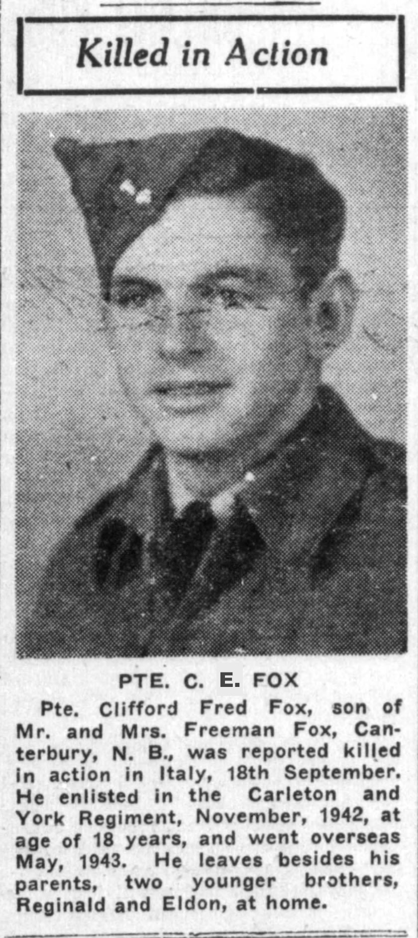 Digital gallery of Private Clifford Earl Fox