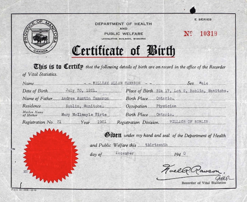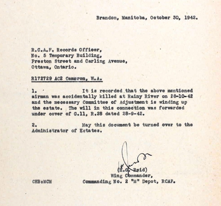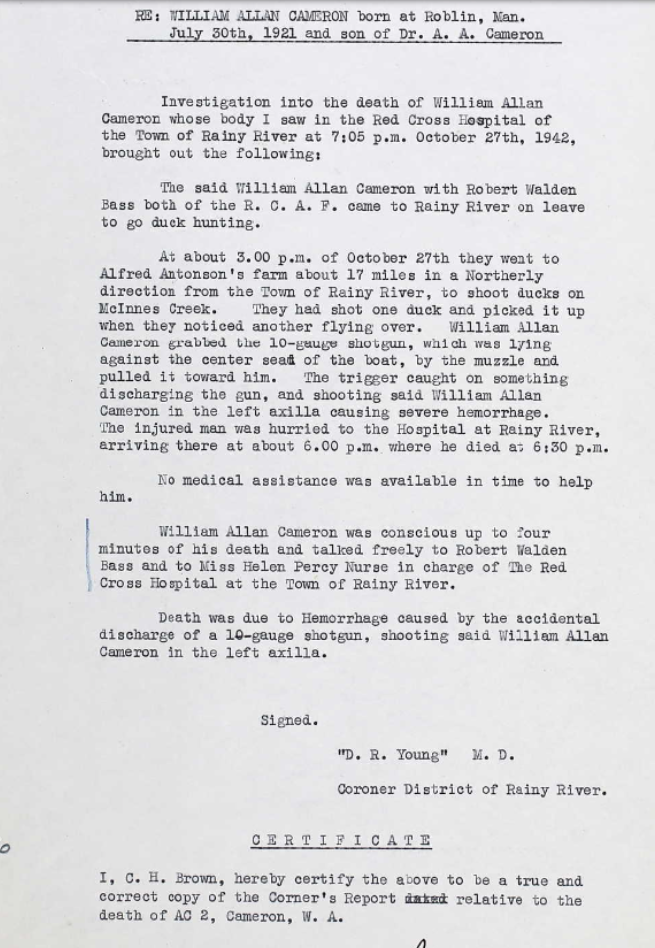 Son of Sqdn. Ldr. Andrew Austin Cameron, R.C.A.F. (died on Active Service, 13th February, 1945), and Mary M. Cameron, of Rainy River, Ontario.