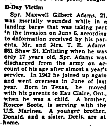 Digital gallery of Sapper Maxwell Gilbert Adams