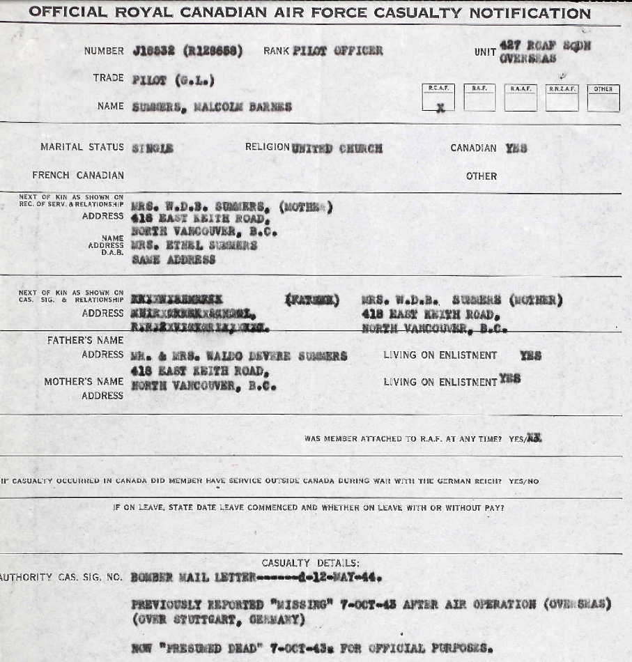 Son of Waldo D. Summers and Ethel B. Summers, of North Vancouver, British Columbia, Canada.