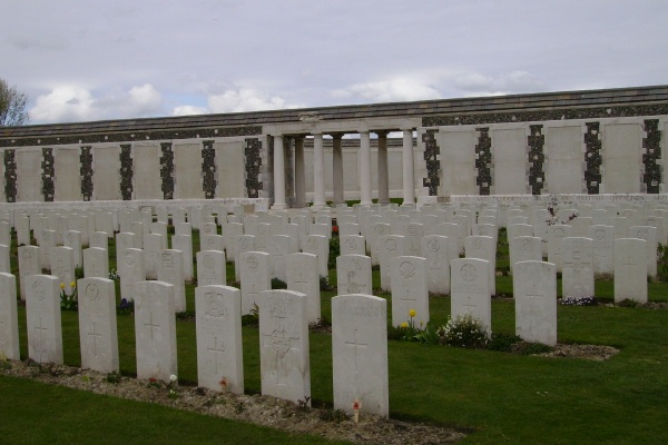 The Tyne Cot Memorial forms the northeastern boundary of Tyne Cot Cemetery, which is located 9 Km north east of Ieper town centre on the Tynecotstraat, a road leading from the Zonnebeekseweg (N332). The cemetery itself lies 700 meters along the Tynecotstraat on the right hand side of the road.