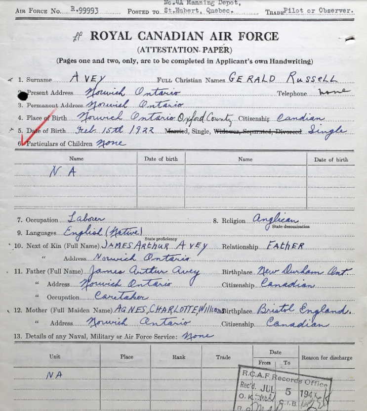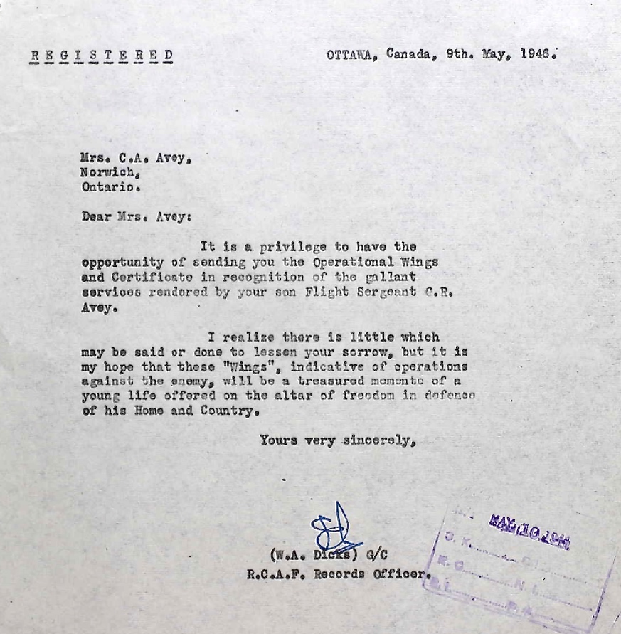 Son of Mr. and Mrs. J. A. Avey, of Norwich, Ontario.