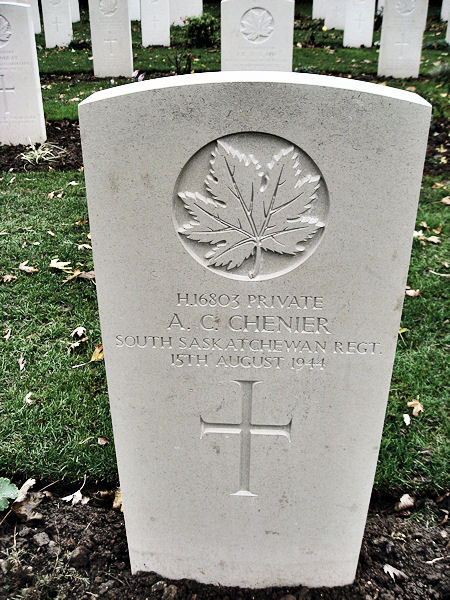It was on the coast just to the north that the 3rd Canadian Division landed on 6th June 1944; on that day, 335 officers and men of that division were killed in action or died of wounds. In this cemetery are the graves of Canadians who gave their lives in the landings in Normandy and in the earlier stages of the subsequent campaign. Canadians who died during the final stages of the fighting in Normandy are buried in Bretteville-sur-Laize Canadian War Cemetery.
