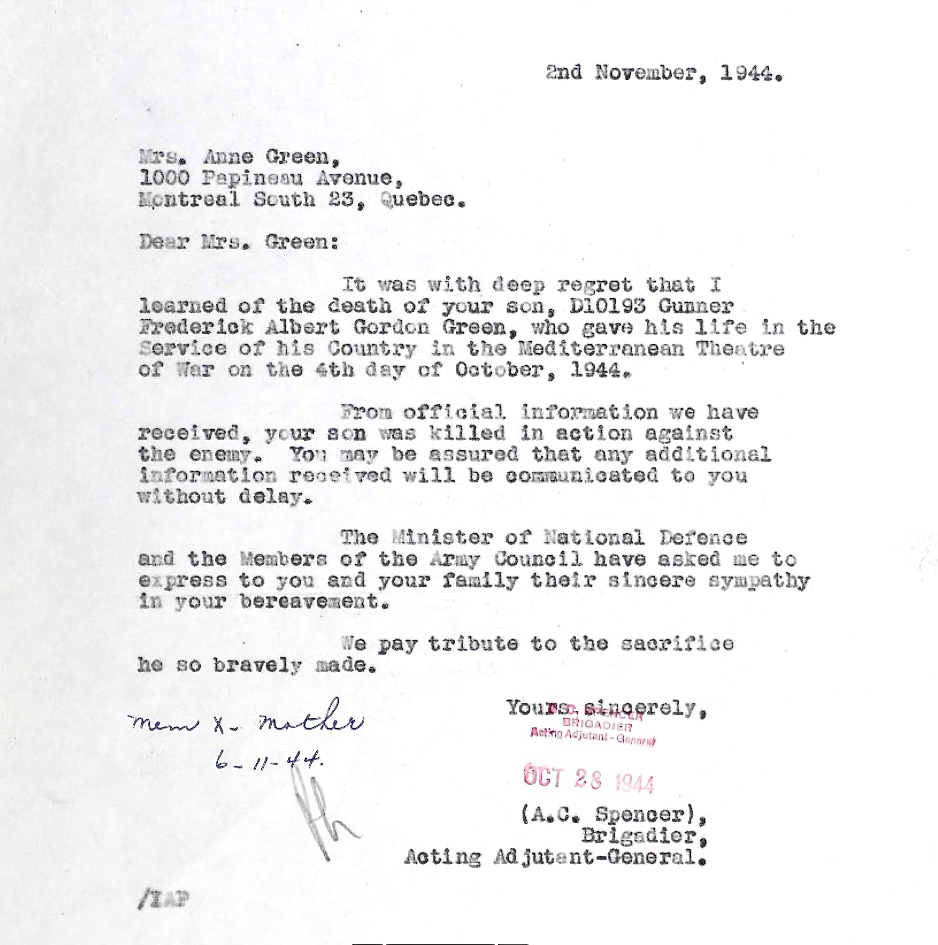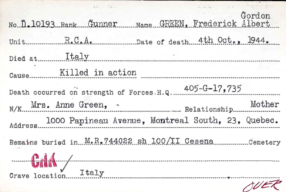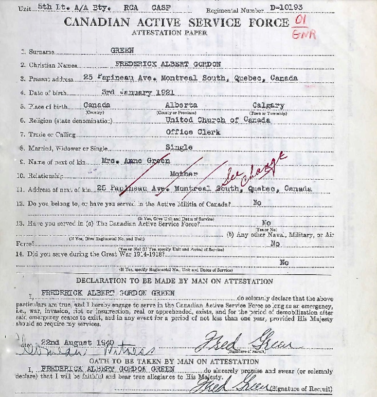 Son of Frederick Gordon Green and Annie Green, of Montreal, Quebec.
