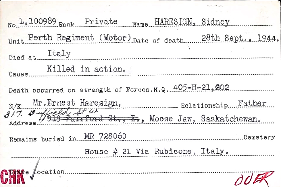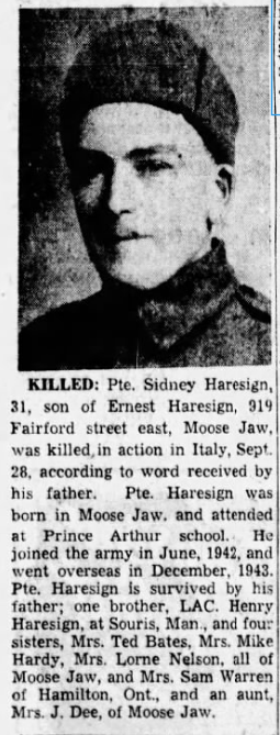 Digital gallery of Private Sidney Haresign