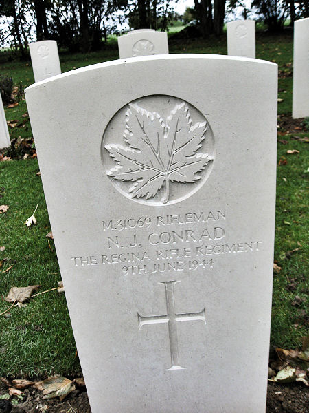 It was on the coast just to the north that the 3rd Canadian Division landed on 6th June 1944; on that day, 335 officers and men of that division were killed in action or died of wounds. In this cemetery are the graves of Canadians who gave their lives in the landings in Normandy and in the earlier stages of the subsequent campaign. Canadians who died during the final stages of the fighting in Normandy are buried in Bretteville-sur-Laize Canadian War Cemetery.