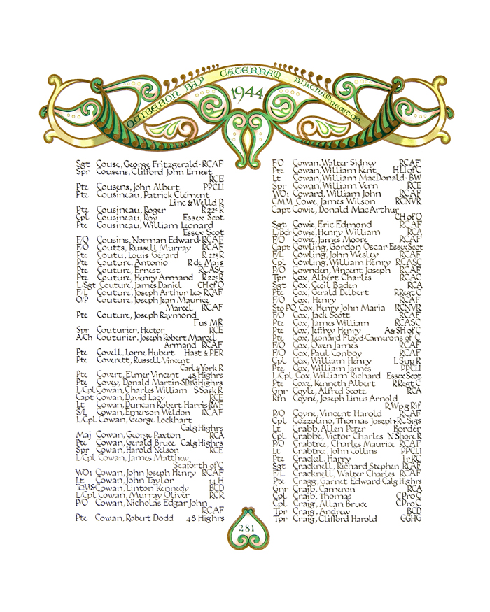 There are a total of 2,048 burials in Beny-sur-Mer Canadian War Cemetery. There is also one special memorial erected to a soldier of the Canadian Infantry Corps who is known to have been buried in this cemetery, but the exact site of whose grave could not be located.