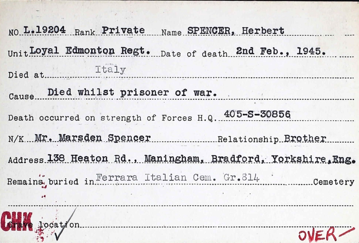 Digital gallery of Private Herbert Spencer