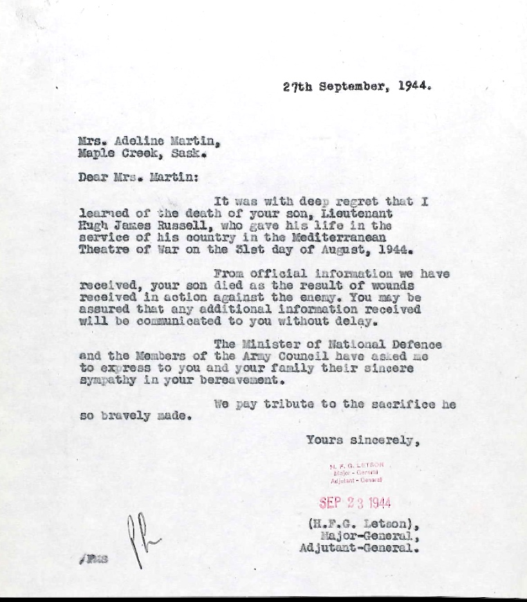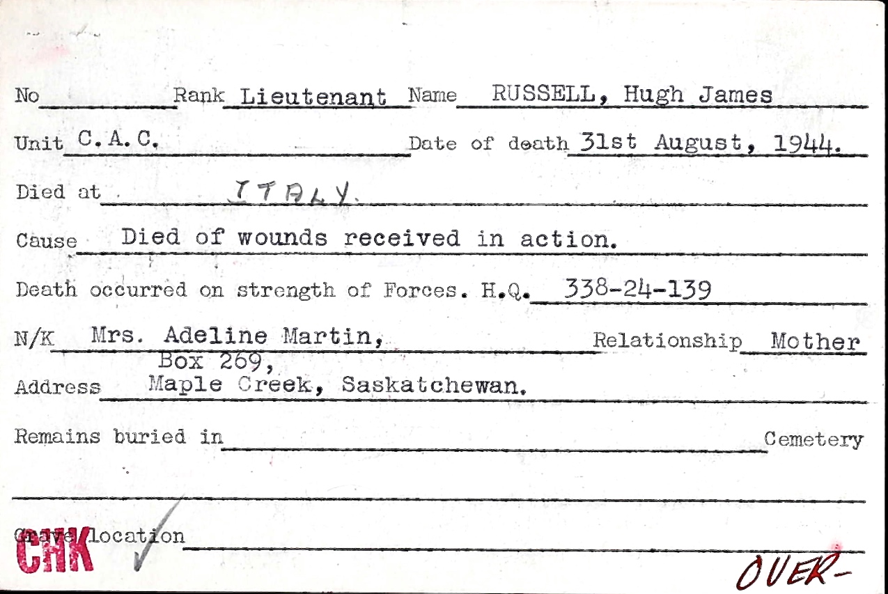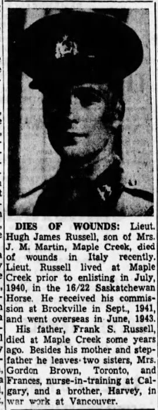 Son of Frank and Adeline F. Russell, of Maple Creek, Saskatchewan, Canada.