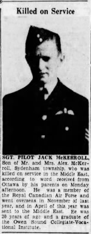 Son of Alexander John and Margaret Elizabeth McKerroll, of Owen Sound, Ontario.