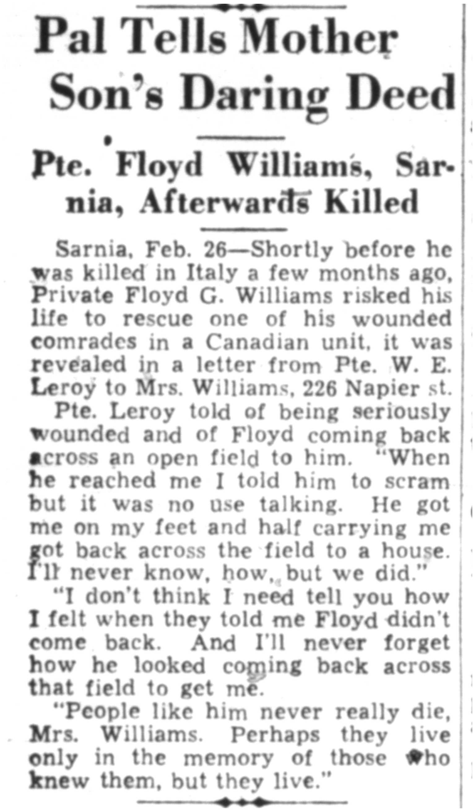 Digital gallery of Private Floyd George Williams