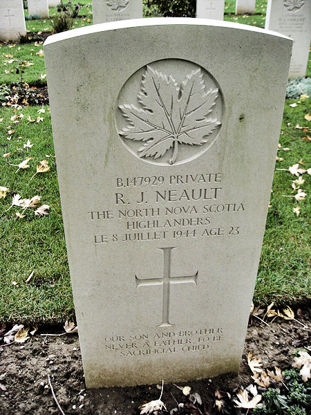 It was on the coast just to the north that the 3rd Canadian Division landed on 6th June 1944; on that day, 335 officers and men of that division were killed in action or died of wounds. In this cemetery are the graves of Canadians who gave their lives in the landings in Normandy and in the earlier stages of the subsequent campaign. Canadians who died during the final stages of the fighting in Normandy are buried in Bretteville-sur-Laize Canadian War Cemetery.