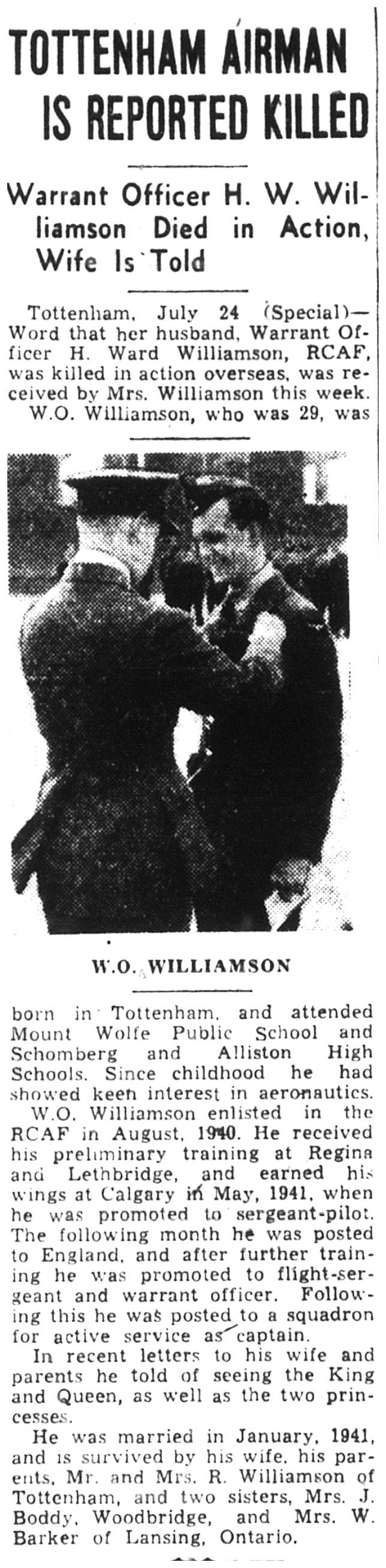 Son of Russel and Florence Williamson of Tottenham, Ontario. Husband of Sybil Williamson, of Port Hope, Ontario.
