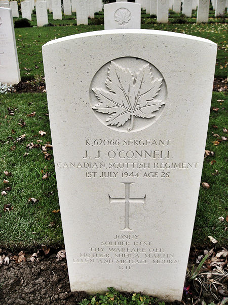 It was on the coast just to the north that the 3rd Canadian Division landed on 6th June 1944; on that day, 335 officers and men of that division were killed in action or died of wounds. In this cemetery are the graves of Canadians who gave their lives in the landings in Normandy and in the earlier stages of the subsequent campaign. Canadians who died during the final stages of the fighting in Normandy are buried in Bretteville-sur-Laize Canadian War Cemetery.
