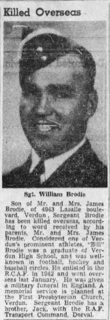 Son of James and Jessie Brodie, of Verdun, Province of Quebec, Canada.