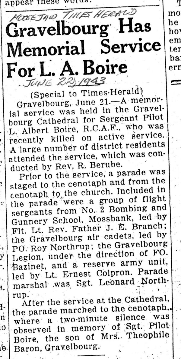 Son of Alcide and Claudia Boire; stepson of Theophile Baron, of Gravelbourg, Saskatchewan, Canada.