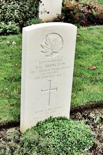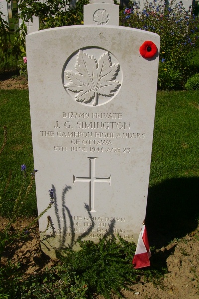 It was on the coast just to the north that the 3rd Canadian Division landed on 6th June 1944; on that day, 335 officers and men of that division were killed in action or died of wounds. In this cemetery are the graves of Canadians who gave their lives in the landings in Normandy and in the earlier stages of the subsequent campaign. Canadians who died during the final stages of the fighting in Normandy are buried in Bretteville-sur-Laize Canadian War Cemetery.