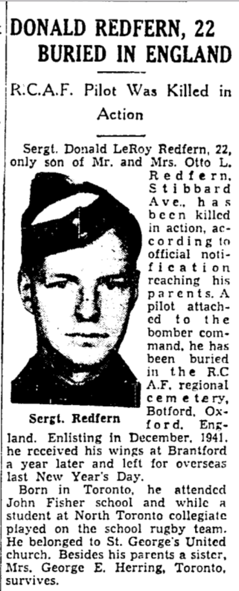 Digital gallery of Flight Sergeant Donald Leroy Redfern