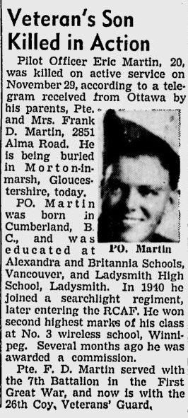 Son of Frank D. Martin and Isabella Martin, of Vancouver, British Columbia, Canada.