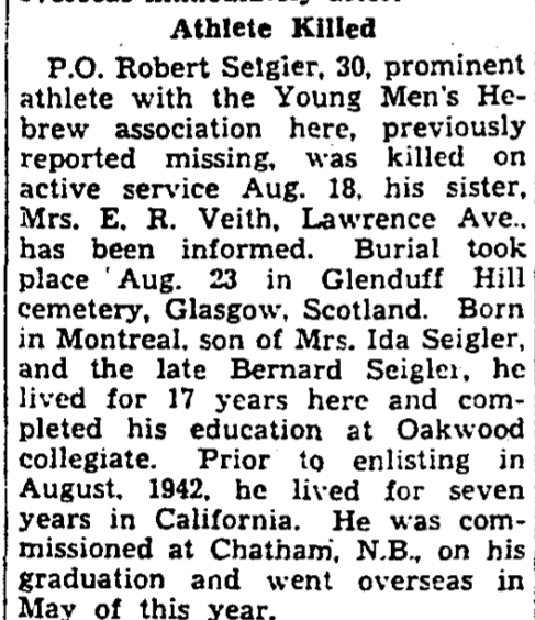 Son of Bernard and Ida Seigler, of Montreal, Province of Quebec, Canada.