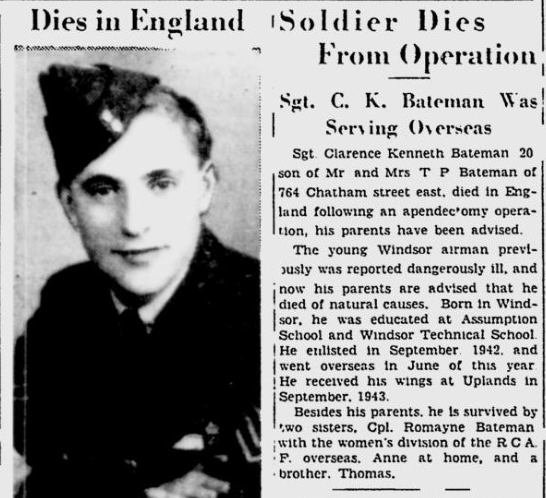 Son of Thomas P. Bateman and Robina Phillips Bateman, of Windsor, Ontario, Canada.