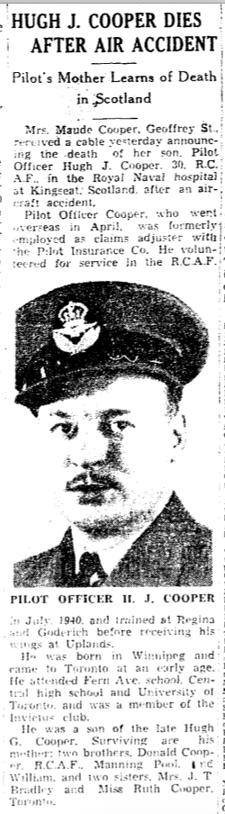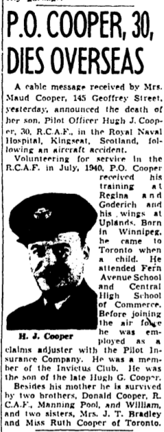 Brother of Sergeant John Donald Cooper, who served with the Royal Canadian Air Force and died on October 21, 1942.
