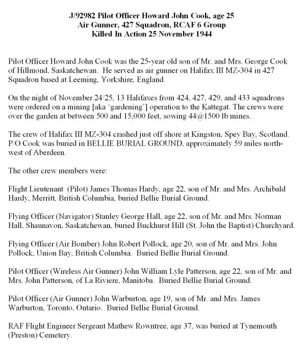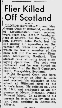 Son of George and Beatrice Cook, of Hillmond, Saskatchewan.