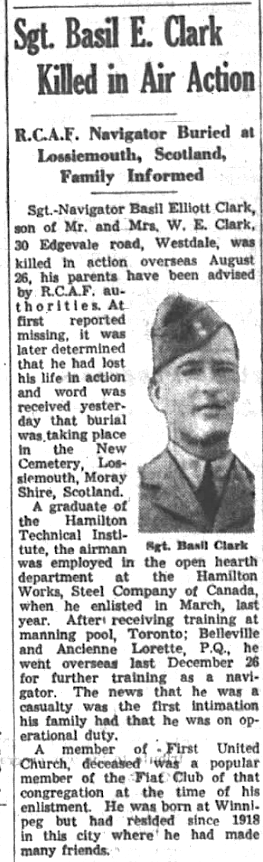 Son of William Ernest and Laurinda Mary Clark, of Hamilton, Ontario.