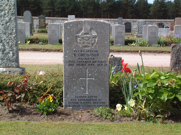 Lossiemouth is a seaport town and coastguard station on the Moray Firth, some five miles due north of Elgin. The burial ground lies between the railway station and Spynie Canal, about a mile and a quarter from the railway station, and it contains war graves of both world wars. There was a Royal Air Force Station at Lossiemouth and when war broke out in 1939 there was already an Air Force plot in the burial ground. This was used for the majority of the service war burials, and only 23 are elsewhere in the cemetery. This plot lies to the right of the main entrance; the Cross of Sacrifice stands at the summit of a slope facing the graves. Inevitably there are a small number of pre-war Air Force graves among the war graves, and three men of the Royal Navy and one belonging to the Royal Canadian Navy who died after the war have also been buried here.