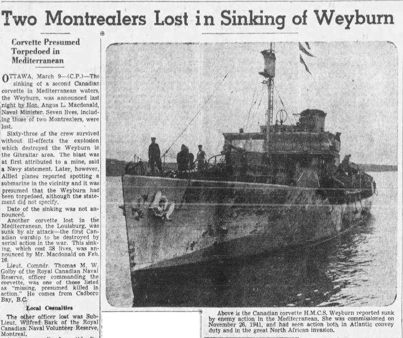 The HALIFAX MEMORIAL in Nova Scotia's capital, erected in Point Pleasant Park, is one of the few tangible reminders of the men who died at sea. Twenty-four ships were lost by the Royal Canadian Navy in the Second World War and nearly 2,000 members of the RCN lost their lives.