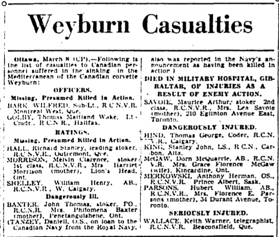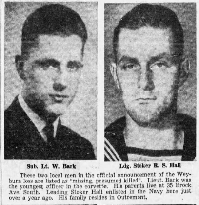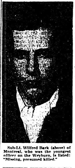 Sub. Lt. Wilfred Bark has been honoured by having Mount Bark named after him. The location of Mount Bark is in Yukon (115H04- 61° 05’ 31”- 137° 30’ 22”)