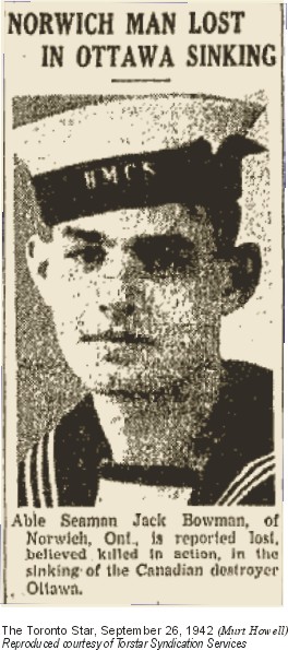The HALIFAX MEMORIAL in Nova Scotia's capital, erected in Point Pleasant Park, is one of the few tangible reminders of the men who died at sea. Twenty-four ships were lost by the Royal Canadian Navy in the Second World War and nearly 2,000 members of the RCN lost their lives.