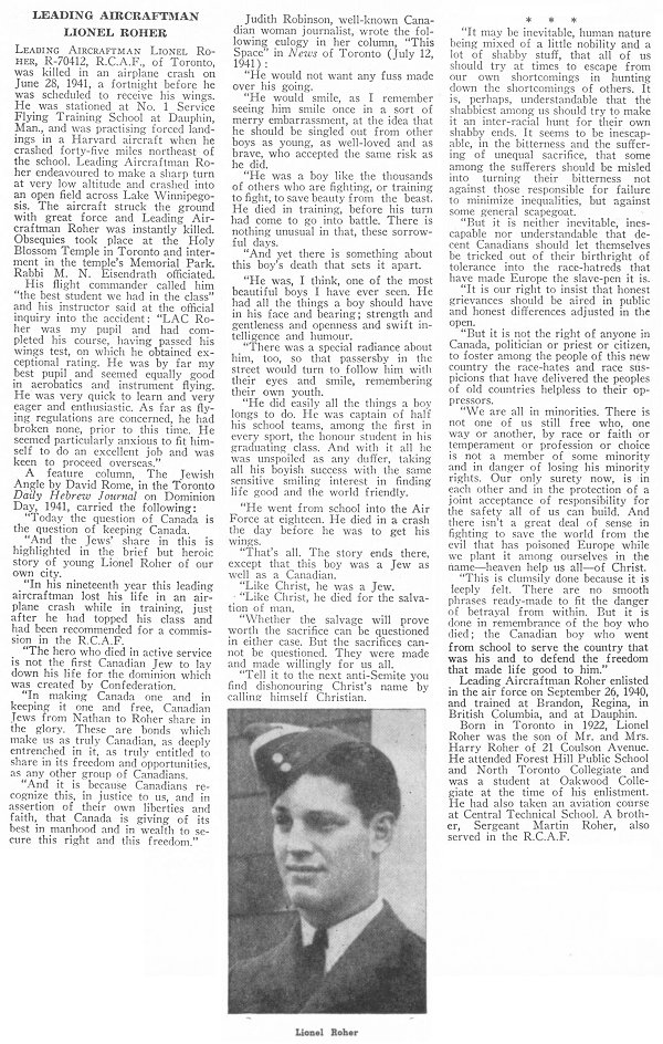 Son of George and Anna Roher, of Toronto, Ontario. Brother of Martin and Ruth.