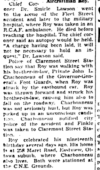Son of Philippe and Valeda Roy, of Eastview, Ontario.