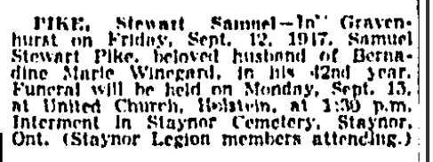 Son of Mr. and Mrs. William Pike, of Holstein; husband of Bernadine M. Pike, of Mount Forest.