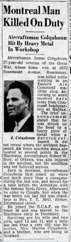 Son of Andrew and Martha Colquhoun, of Glasgow, Scotland; husband of Teresa Colquhoun, of Verdun.