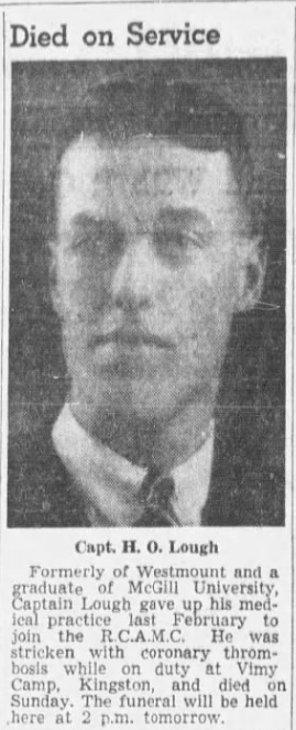 Son of John Oberlin Lough and Margaret G. Lough, of Westmount; husband of Gwendolen E. Lough, of Gananoque, Ontario.