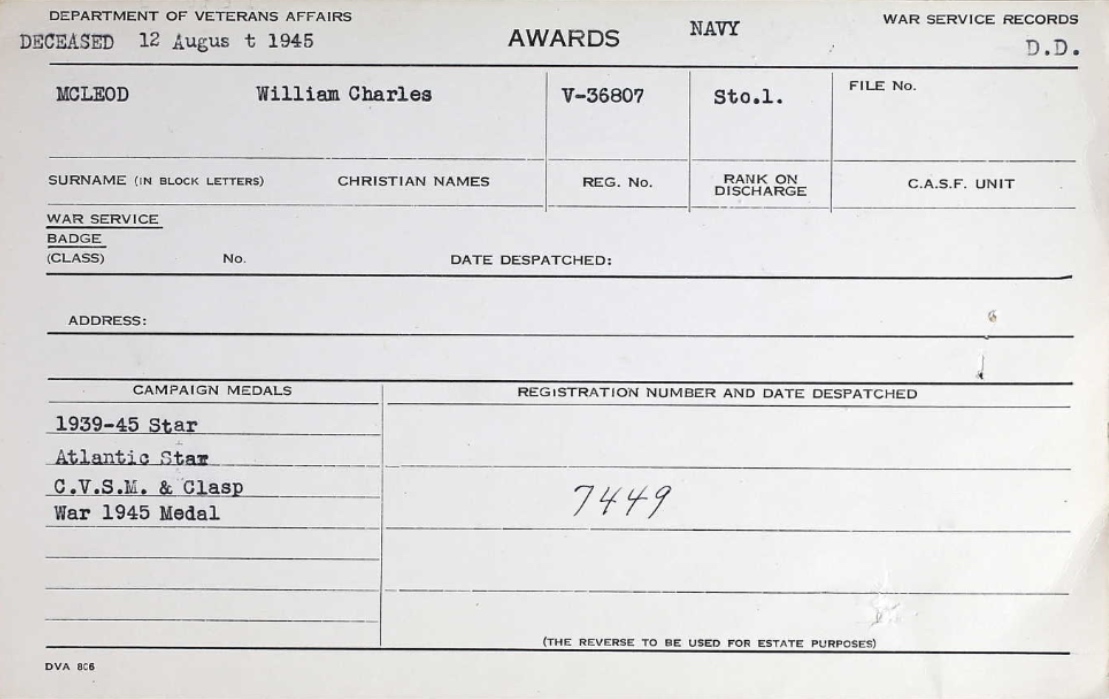 Unit/Regiment: Royal Canadian Naval Volunteer Reserve