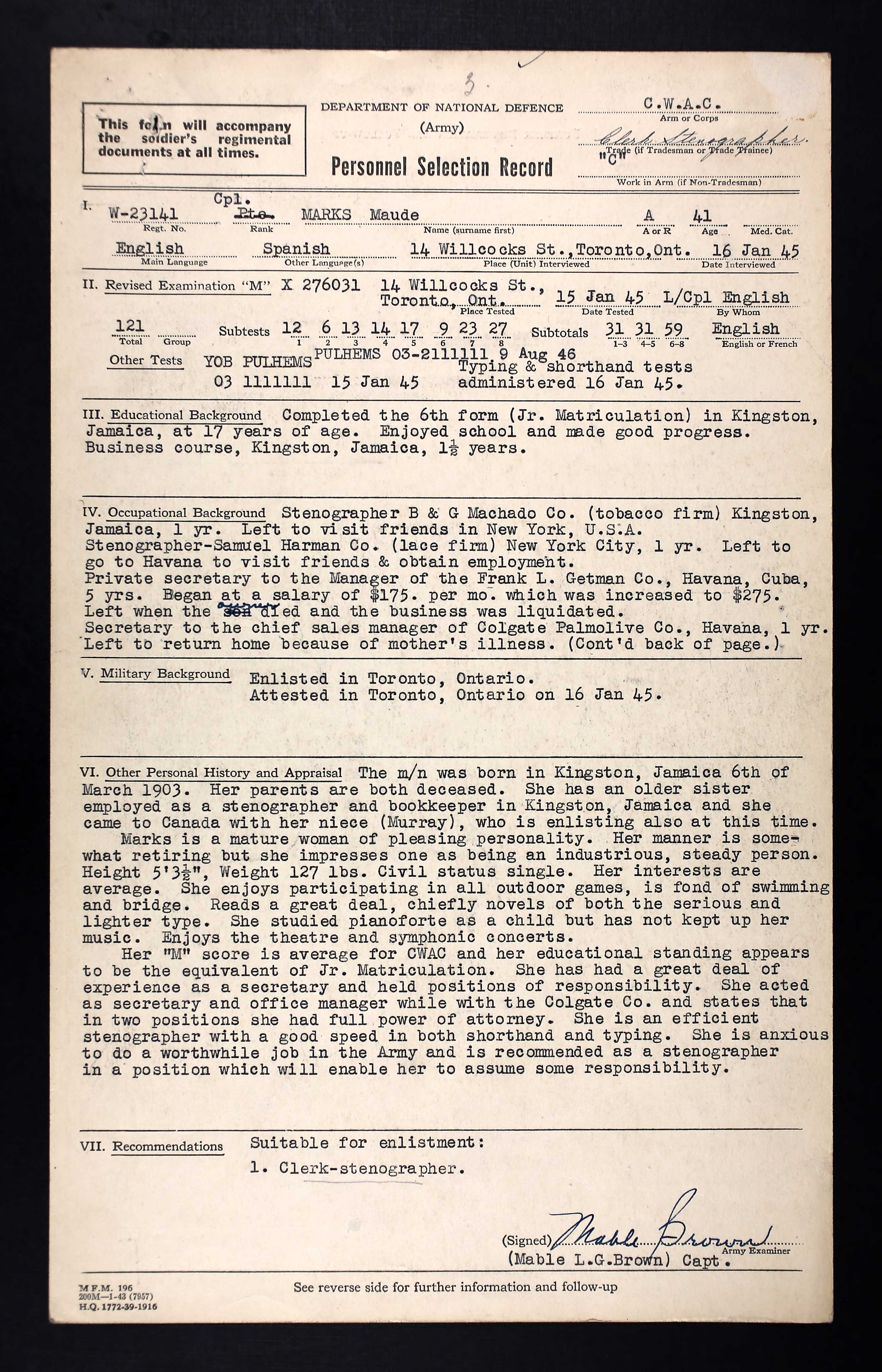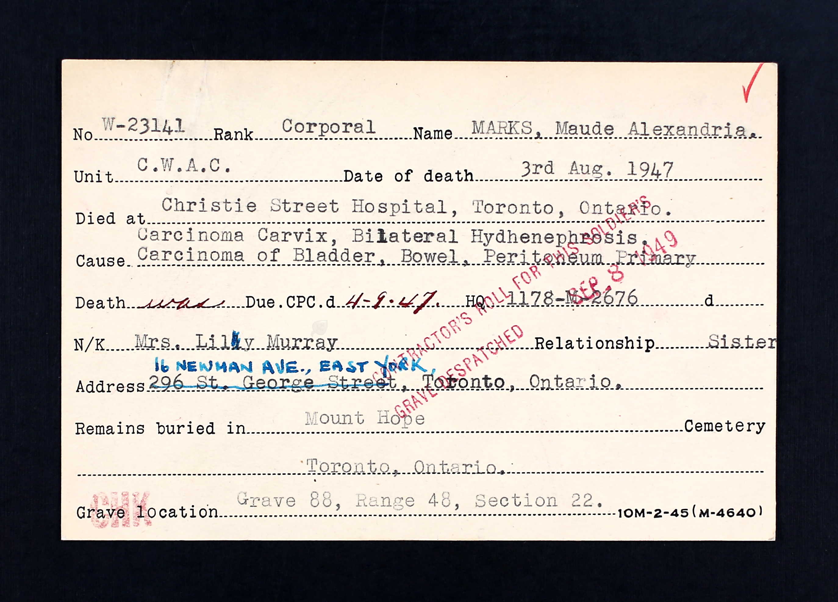 Daughter of Solomon and Mary Marks; sister of Lily V. Murray, of Toronto, Ontario.