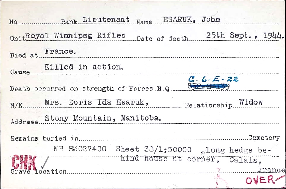 Leubringhen is a village in the Department of the Pas-de-Calais, halfway between Calais and Boulogne. The Calais Canadian War Cemetery is in Leubringhen and is situated on the east side of the Calais-Boulogne road, 14 kilometres from Calais.