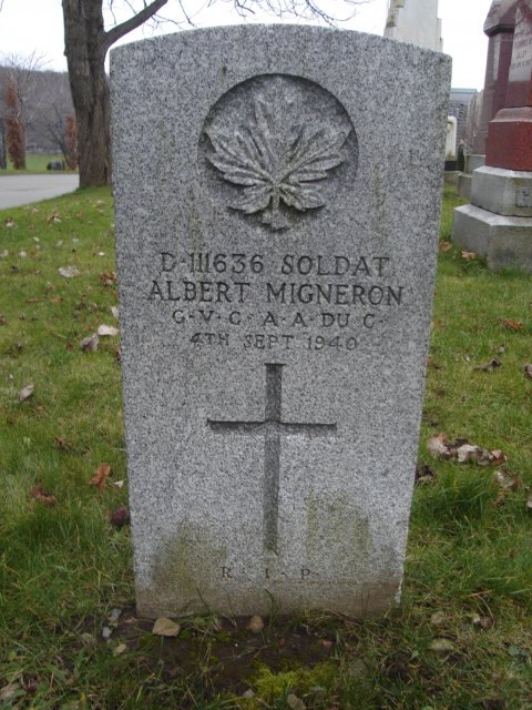 Montreal (Notre Dame des Nieges) Cemetery adjoins the Mount Royal Cemetery, in Montreal, Québec, and a War Cross is erected on the dividing line. Access by car via Highway 15 (Decarie) south, and take the exit for Queen Mary Road. Follow signs for Cote des Neiges Road south. The entrance to the cemetery is on the left hand side of this road.