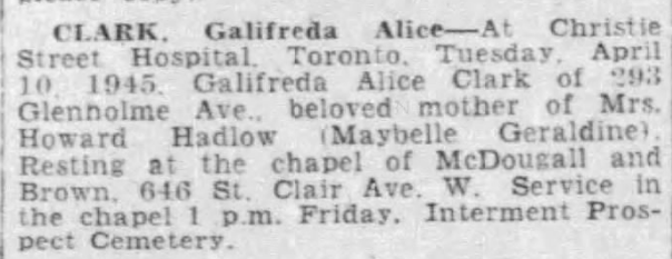 TORONTO (PROSPECT) CEMETERY Ontario, Canada