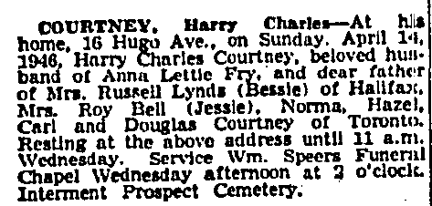 Son of Jonathan and Emily Courtney, of Schomberg; husband of Annie L. Courtney, of Toronto.