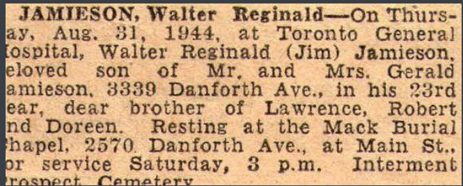 Son of Mrs. Mary Jamieson, of Toronto, Ontario.