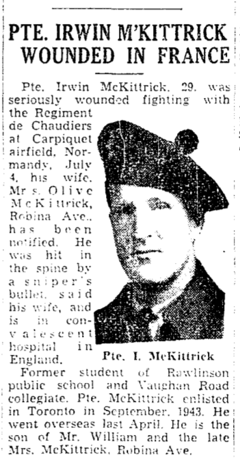 Son of Mr. and Mrs. William McKittrick, of Toronto; husband of Olive M. McKittrick, of Toronto.
