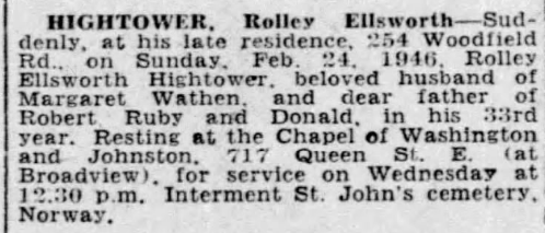 TORONTO (ST. JOHN'S NORWAY) CEMETERY Ontario, Canada