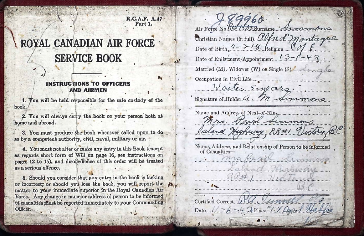 Digital gallery of Pilot Officer Alfred Montague Simmons