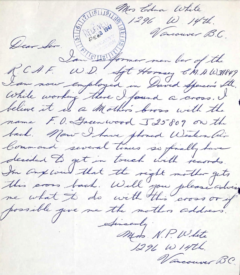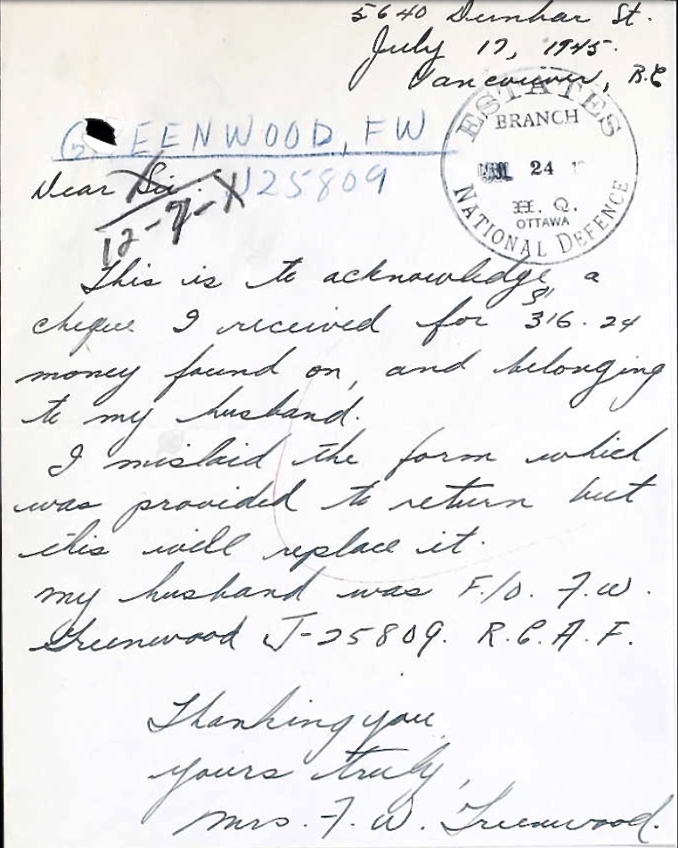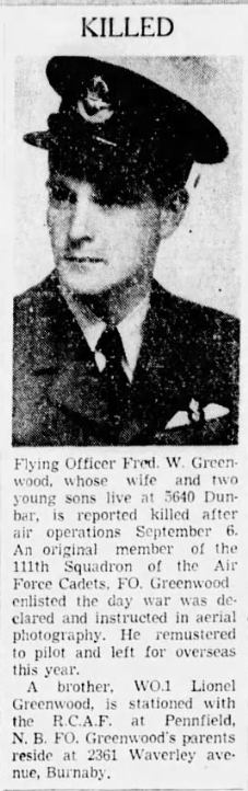 Son of William and Iva Alice Greenwood. Husband of Jessie D. Greenwood, of Vancouver, British Columbia.