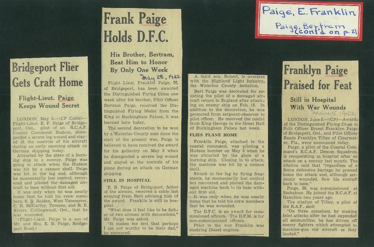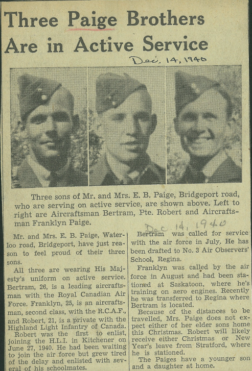 Son of Ernest B. and Elva E. Paige, of Bridgeport, Ontario.