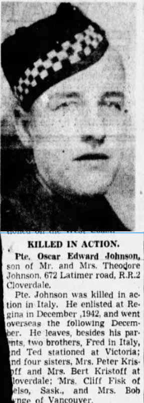 Son of Theodore and Jenny Johnson, of Cloverdale, British Columbia.